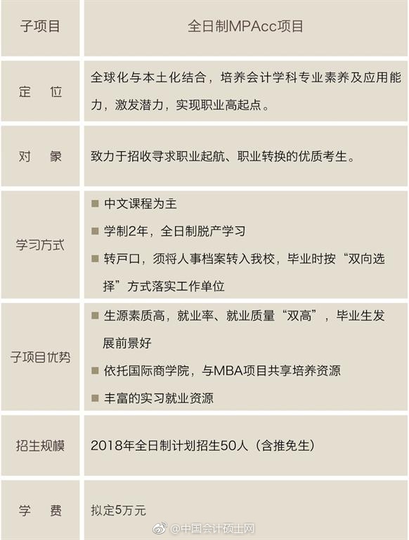3.学费:2017年全日制会计硕士学费拟定5万元,非全日制会计硕士学费拟定为12万元(两年共计),可一次性缴清,也可按年度缴纳。