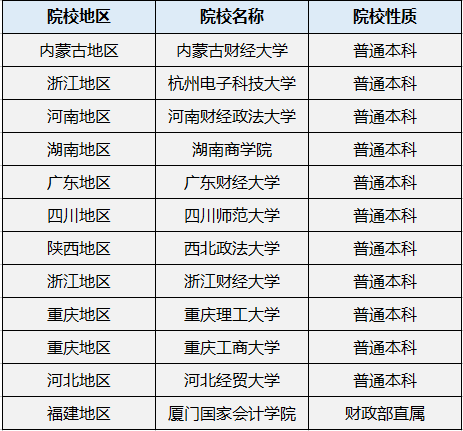 2018年3月22日,教育部发布了《国务院学位委员会关于下达2017年审核增列的博士、硕士学位授权点名单的通知》,明确提到的新增审计硕士院校共计12所,如下:
